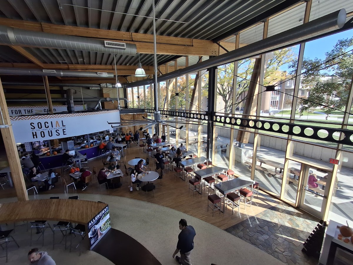 The food is scratch kitchen made on the spot. All you can eat. It's just OK. Salad bar is good. Ambiance is very good. Great place to study and hang out - lots of light and great views upstairs when there's room.